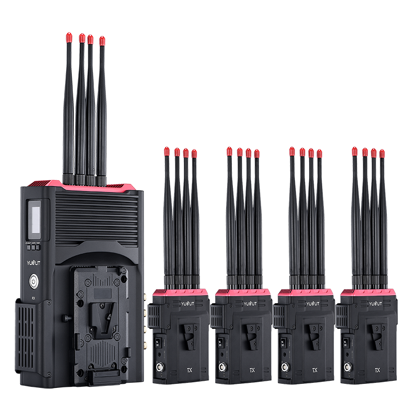 YD-TY1004-DS是一套四發一收全高清音視頻無線傳輸系統,四路發射共用一路無線信道,支持最高視頻分辨率1080P/60Hz, 此系統基于5G無線網絡技術進行傳輸的,并具有先進的4x4 MIMO和Beam-Forming技術。采用H.265編解碼技術進行圖像處理,圖像更清晰,延時更低。