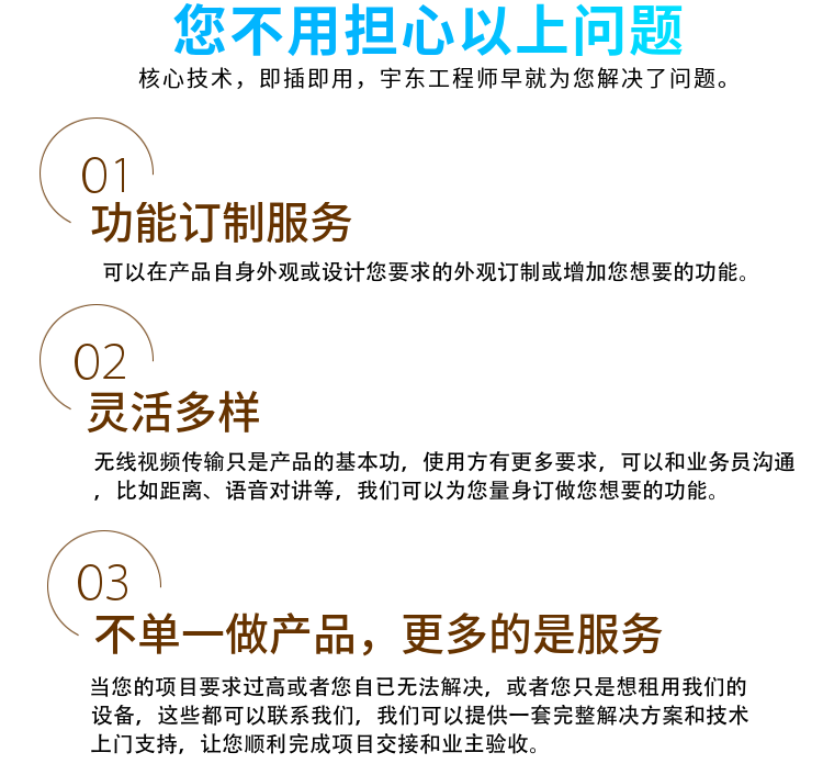 5. 宇東非視距調(diào)制技術(shù),發(fā)射機(jī)輸入具備HDMI以及CVS復(fù)合視音頻接口,各種接口可現(xiàn)場自由切換。